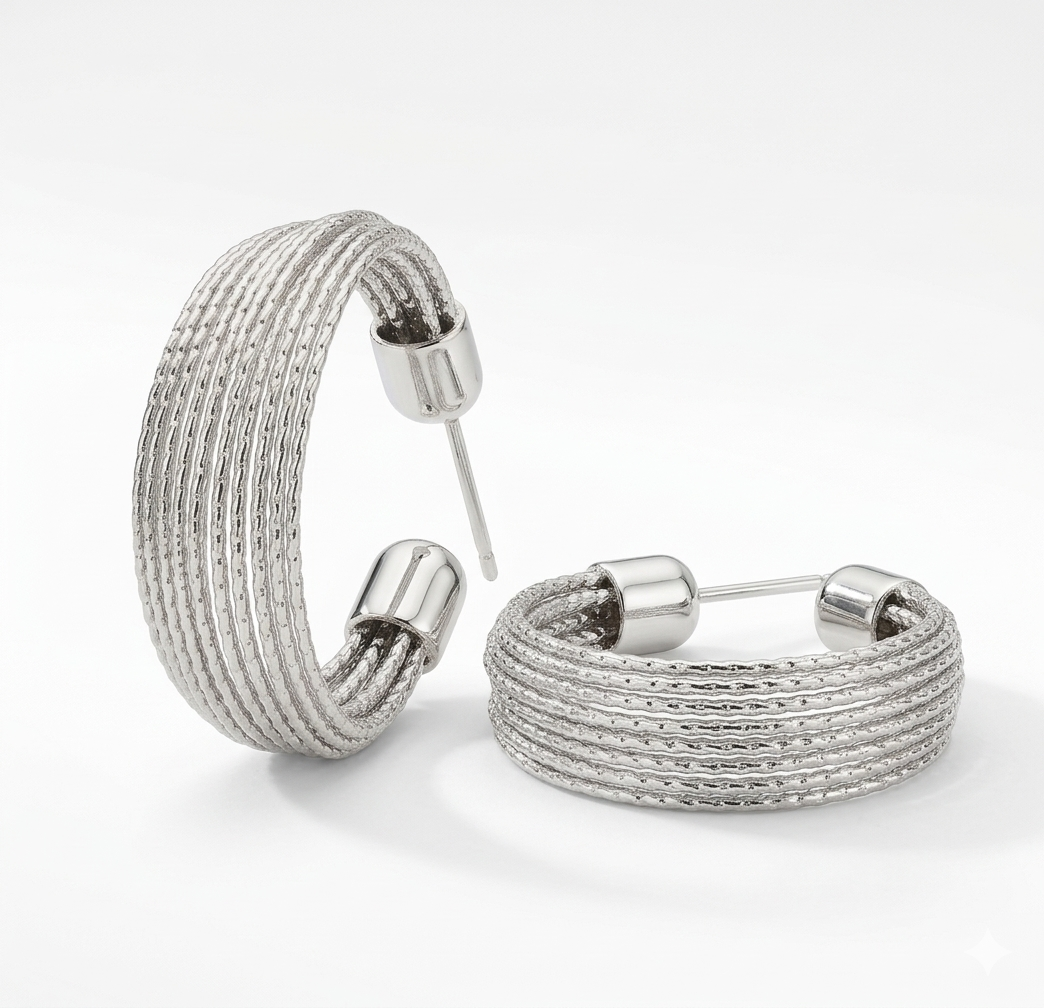 Fabricados em latão de qualidade, estes brincos apresentam um acabamento banhado a prata, proporcionando um brilho subtil e refinado. Leves e confortáveis, são ideais tanto para o uso diário como para ocasiões especiais.
