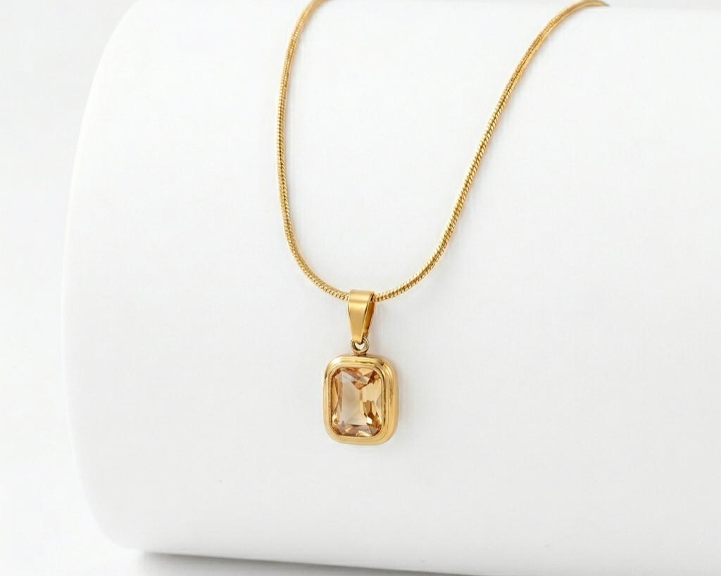 Realce a sua essência com este colar em aço inoxidável Ravisse com banho de ouro 18K, protagonizado por um delicado pingente em 3 opções de cores que simboliza elegância, equilíbrio e sofisticação. O seu brilho subtil e o acabamento dourado criam uma combinação harmoniosa, pensada para mulheres que gostam de acessórios marcantes, mas discretos.
