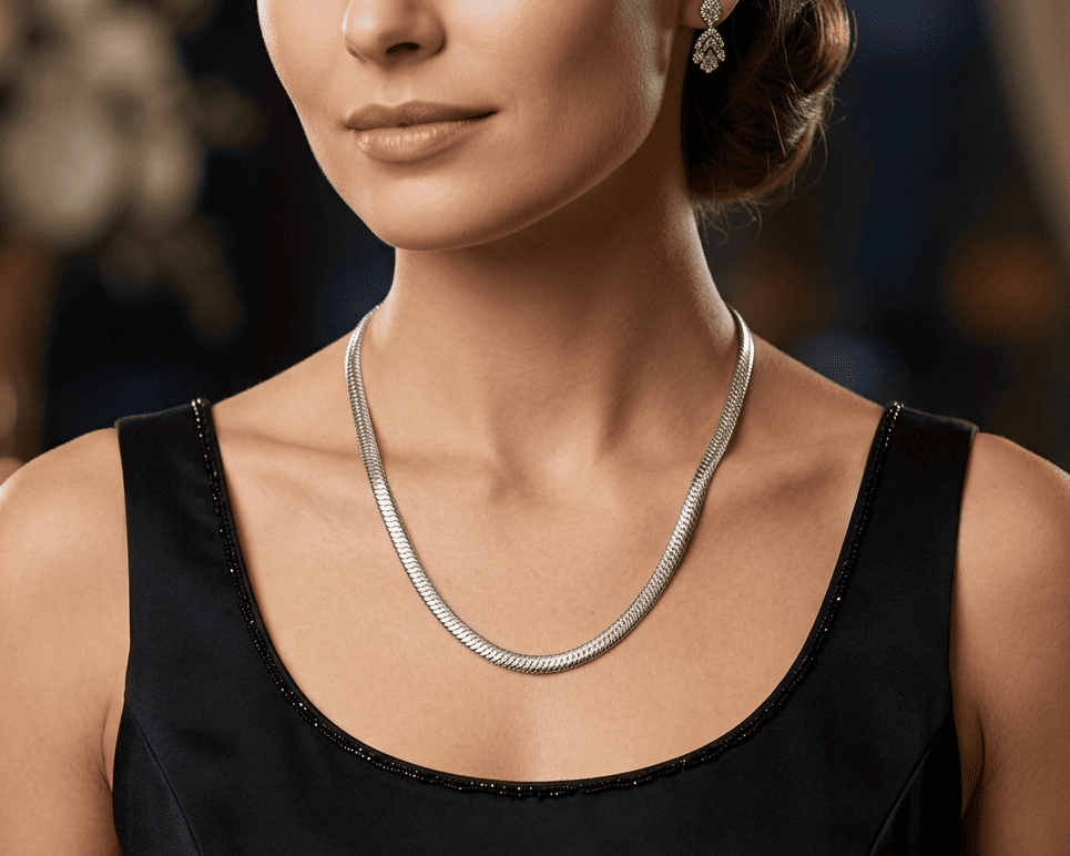 Colar feminino em estilo “osso de cobra”, perfeito para uso diário. Com um design moderno e sofisticado, em aço inoxidável 304L de elevada qualidade