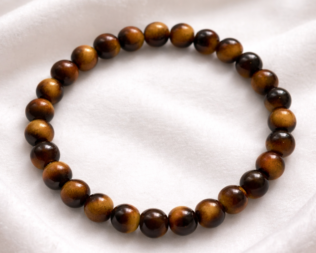 Pulseira Olho de Tigre em Vidro Castanha Contas Redondas